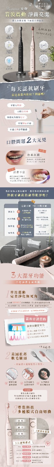 4分鐘前微笑從齒開始!Anqueen安晴臻至潔白智能音波電動牙刷AQ-B101 - 粉色款